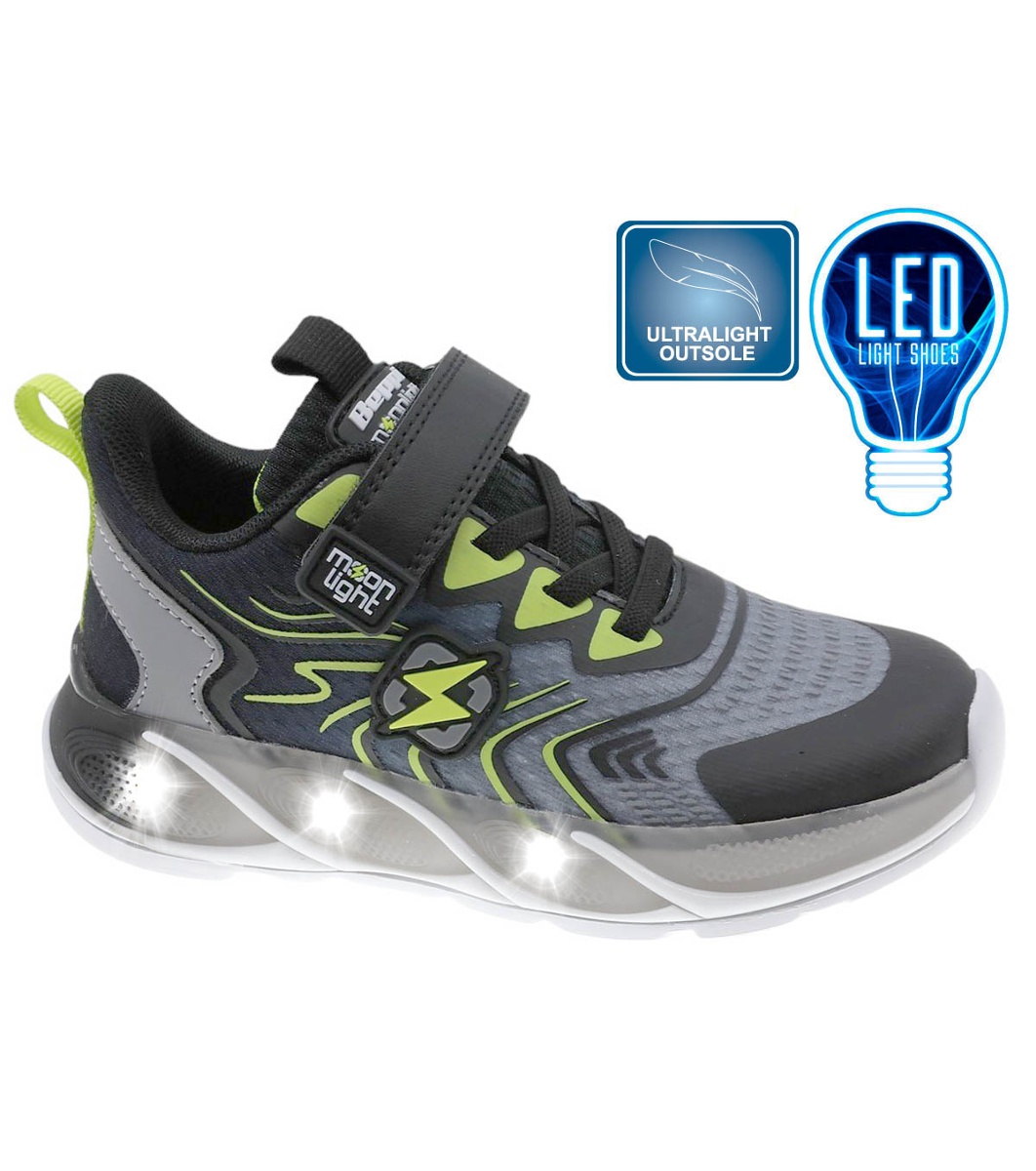 Beppi Teniși negri cu lumini LED și velcro Talpa are elemente ușoare și este ultraușoară