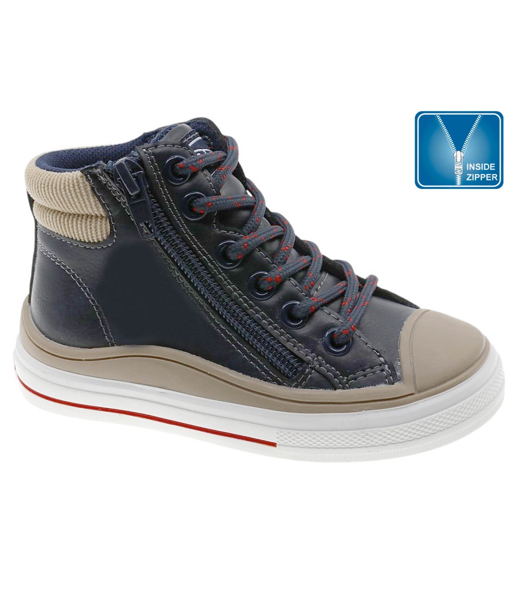 Teniși pentru copii albastru închis cu fermoar lateral și șireturi