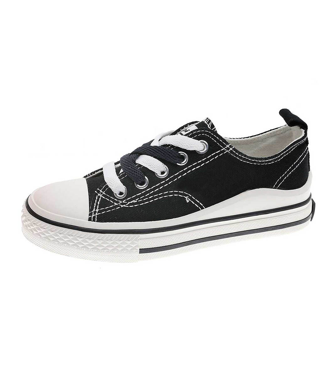 Beppi Tenisi negri pentru copii cu cusături spectaculoase și șireturi În față rotunjite