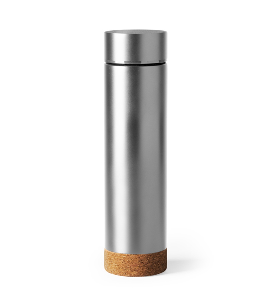 Stamina Termos argintiu TAYOX 460 ml oțel inoxidabil și plută Termos fabricat din oțel 304 cu pereți dubli, infuzor de ceai și bază din plută.