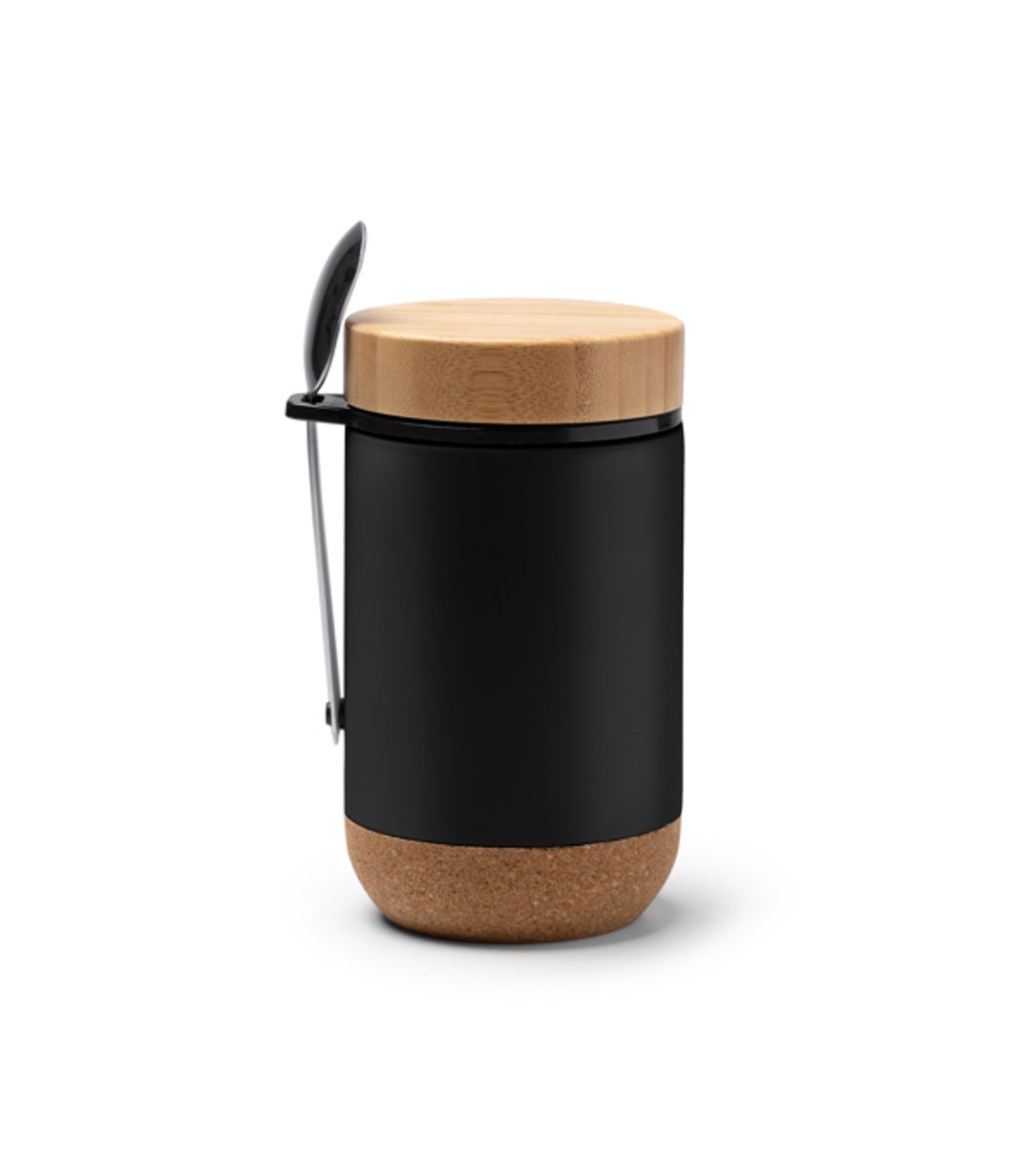 Stamina Termos negru cu linguriță BOKE 400 ml Termos multifuncțional din oțel inoxidabil 304, ideal pentru alimente.