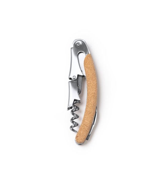 Mecanismul cu dublă pârghie permite procesul de deschidere, reducând la minimum efortul necesar. Mânerul din plută nu numai că conferă tirbușonului un aspect distinctiv, dar oferă și o prindere confortabilă, antiderapantă.