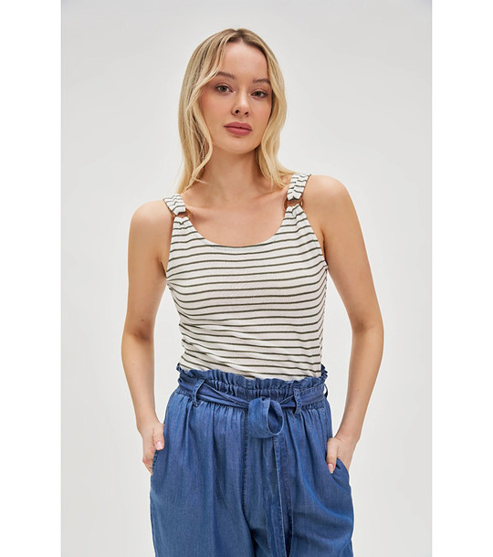 Top alb cu dungi verzi