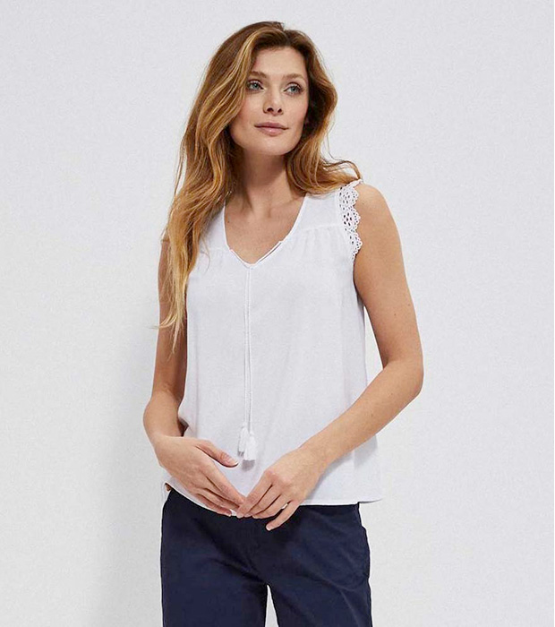 Moodo Top alb din dantelă Wanda Decolteu în V cu șireturi