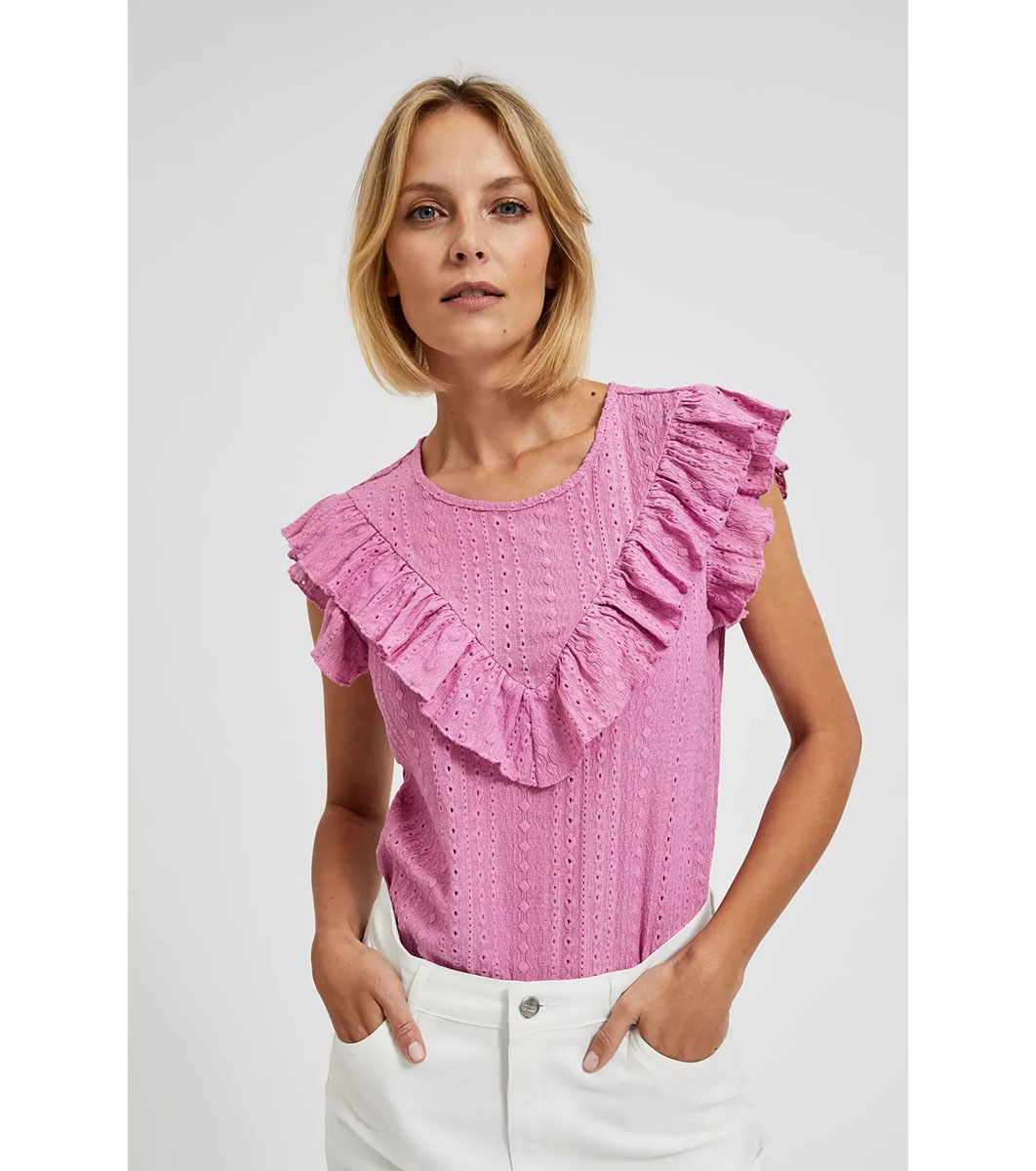 Moodo Top cu volane roz Caryn Decolteu rotund