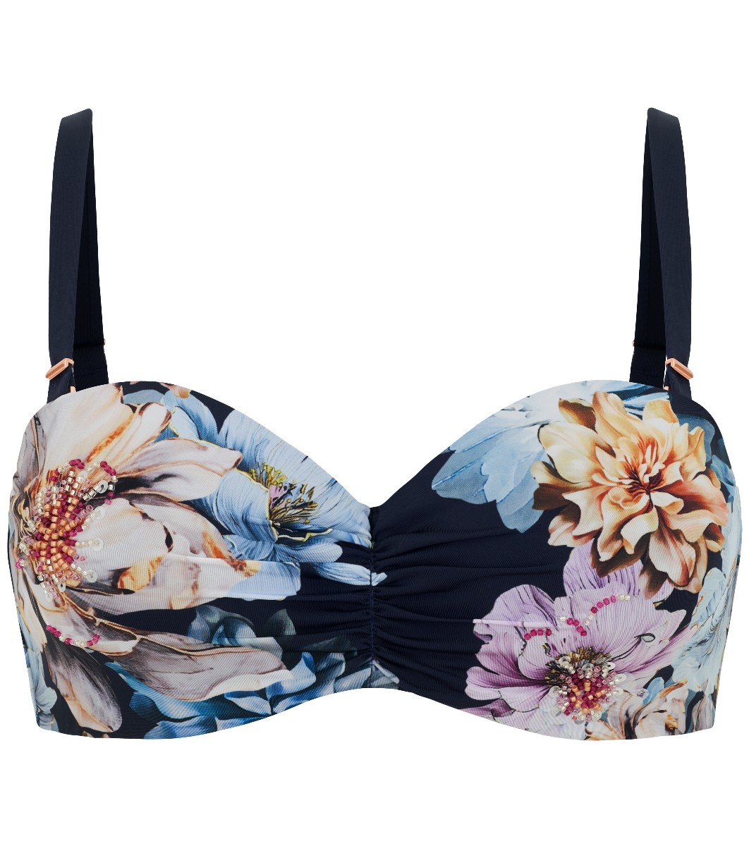Marc & André Top de costum de baie bleumarin pentru femei cu imprimeu floral MIDNIGHT BLOOM Top de costum de baie bandeau cu cupe căptușite