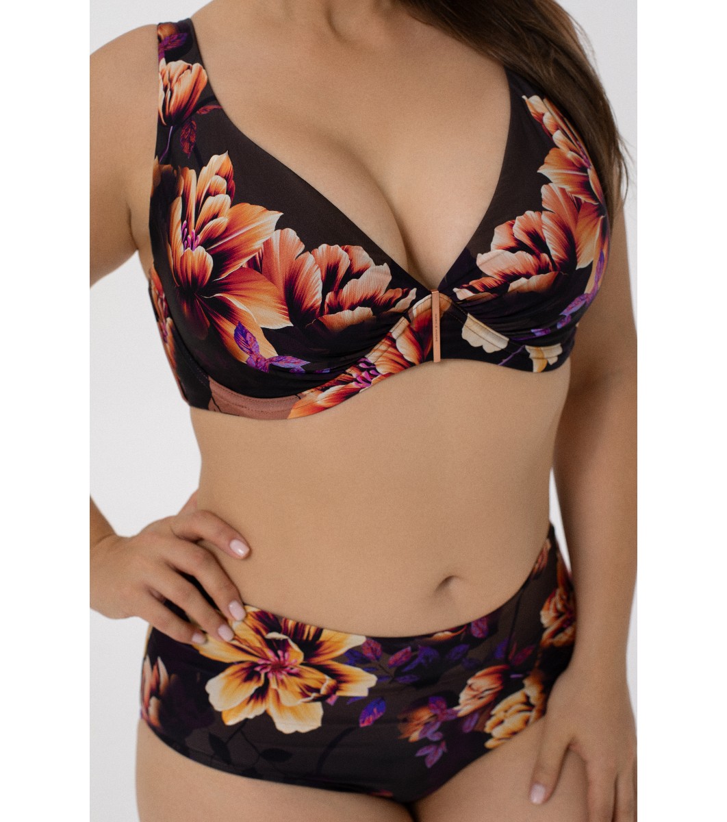 Marc & André Top de costum de baie negru pentru femei cu imprimeu floral FLOWER MANIA Top de costum de baie tip bustier cu decolteu adânc