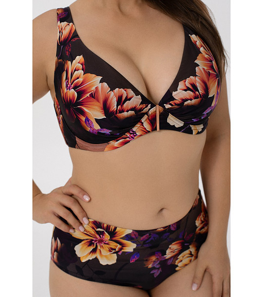 Top de costum de baie negru pentru femei cu imprimeu floral FLOWER MANIA