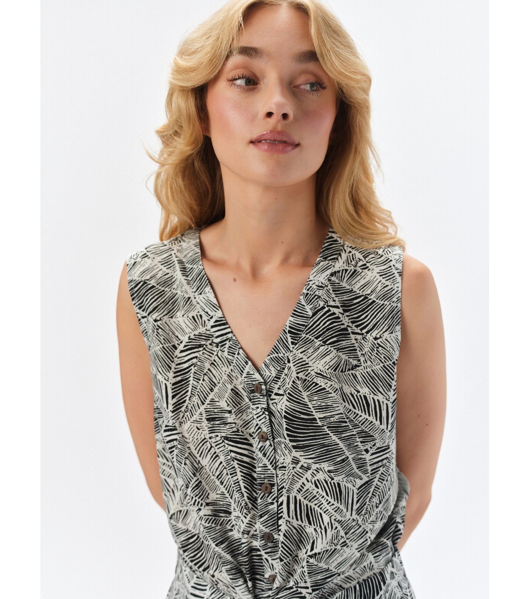 Top Secret Top de damă alb-negru cu decolteu în V și nasturi Fără mâneci