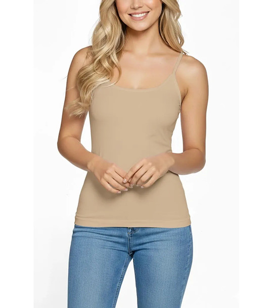 Babell Top de damă bej deschis cu bretele subțiri Macadi Top de damă cu bretele subțiri reglabile.