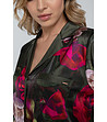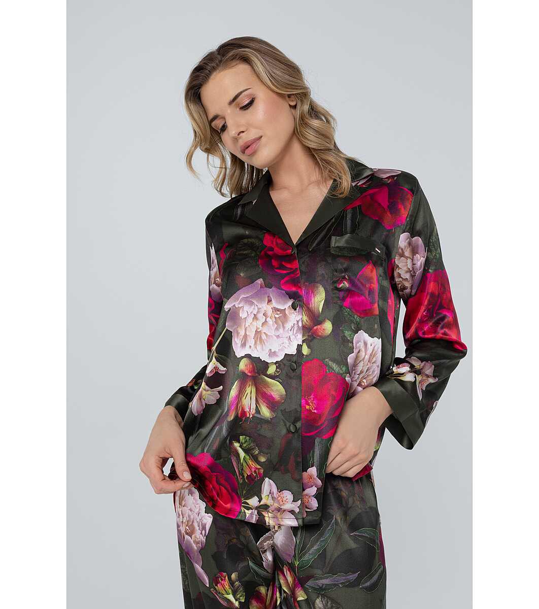 Marc & André Top de pijama de mătase verde închis cu imprimeu floral Frumusețe Guler și revere