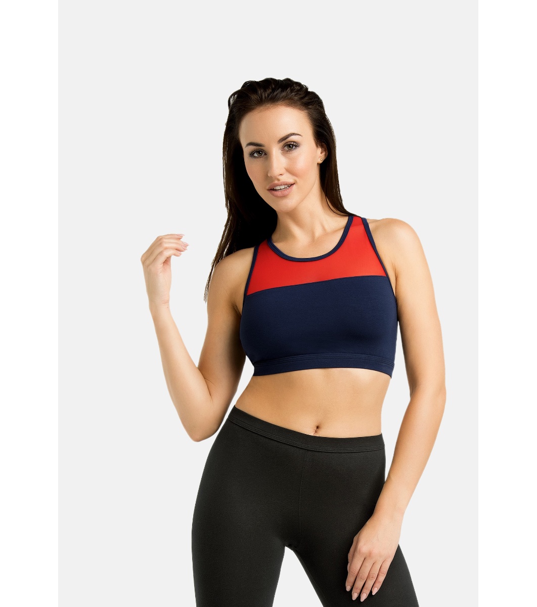 Teyli Top din Lino roșu și bleumarin Top sport pentru femei, confecționat din viscoză vaporoasă de înaltă calitate, datorită căreia se mulează perfect pe siluetă.