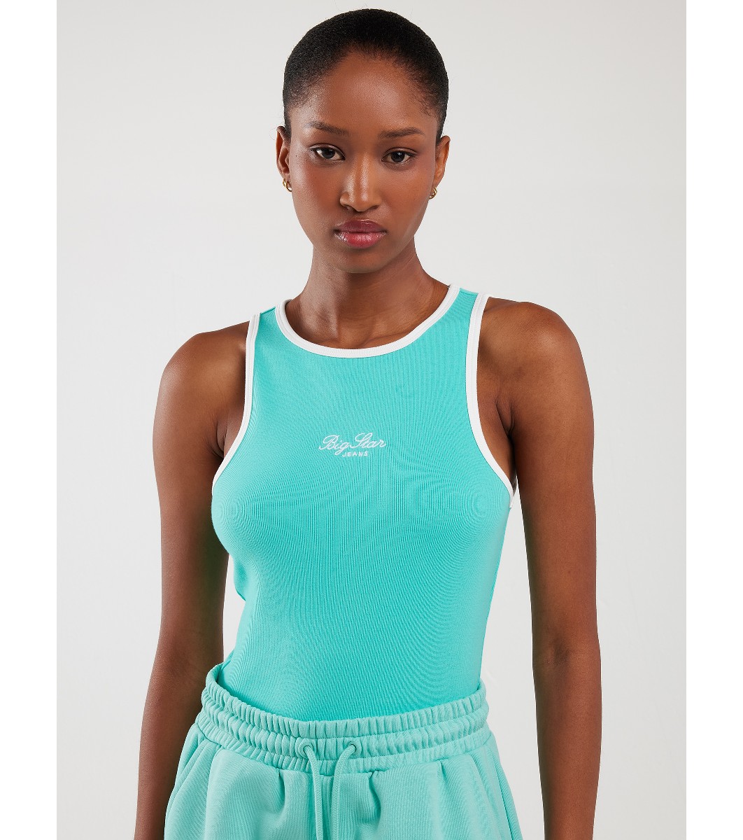 Big Star Top din bumbac albastru ARISA Decolteu rotund