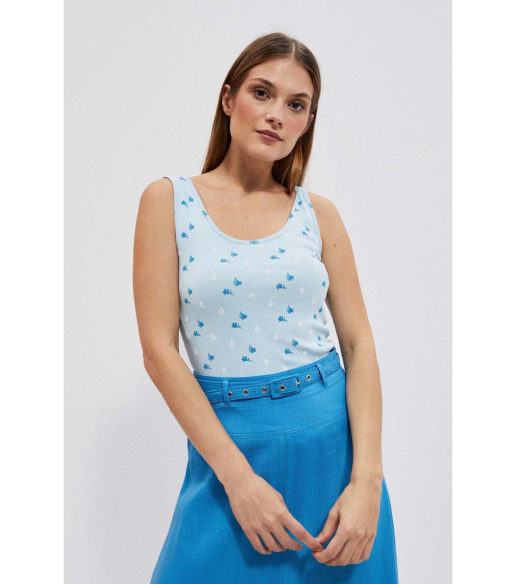 Moodo Top din bumbac albastru-deschis cu imprimeu Zila