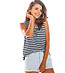 Top din bumbac cu dungi, bleumarin și alb