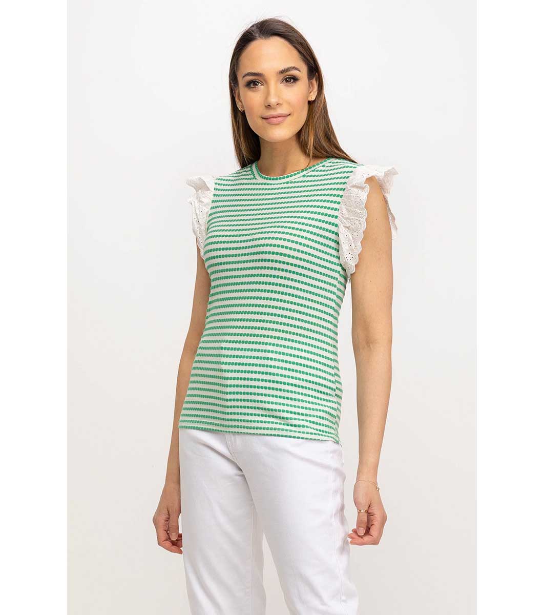 Top din bumbac cu dungi în galben și verde