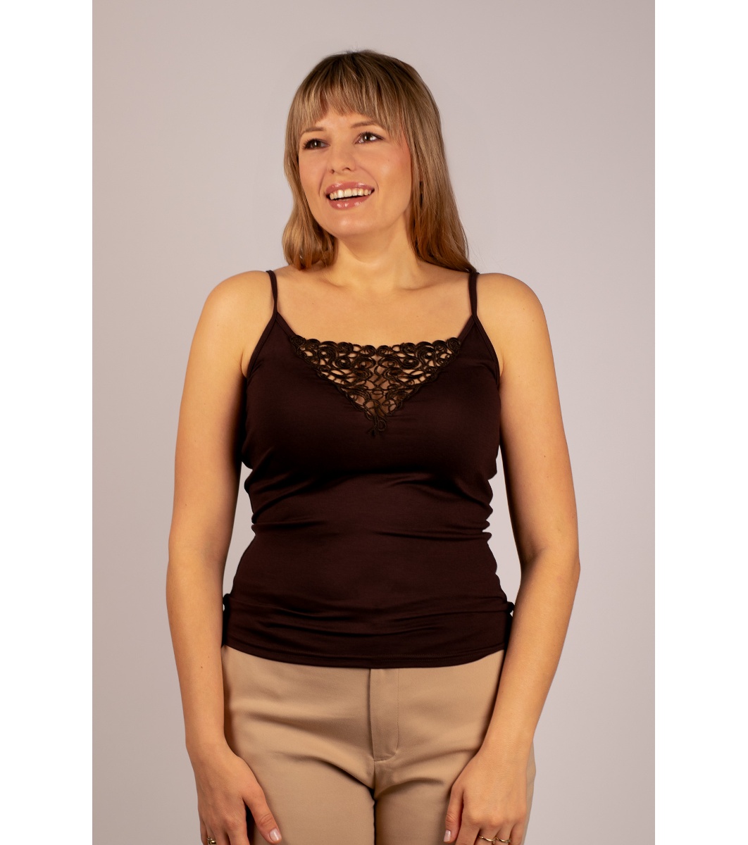 Babell Top din dantelă Coco maro Top de damă cu bretele subțiri și decolteu în V cu panou de dantelă în față
