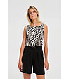 Moodo Top elegant cu imprimeu animal în negru și crem Decolteu rotund