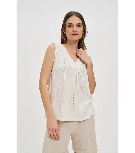 Moodo Top ivory din dantelă englezească Decolteu în V