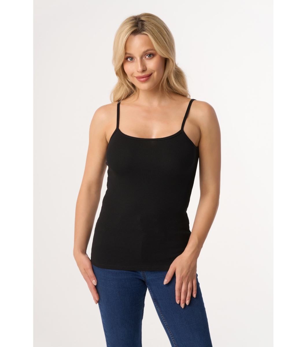Babell Top negru cu bretele subțiri Maxine Top de damă uni, cu bretele subțiri și decolteu rotund
