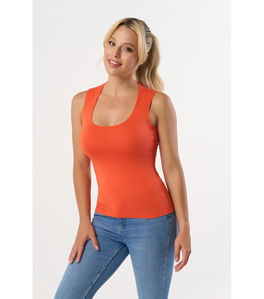 Babell Top portocaliu de damă Iva Top de damă cu decolteu rotund.