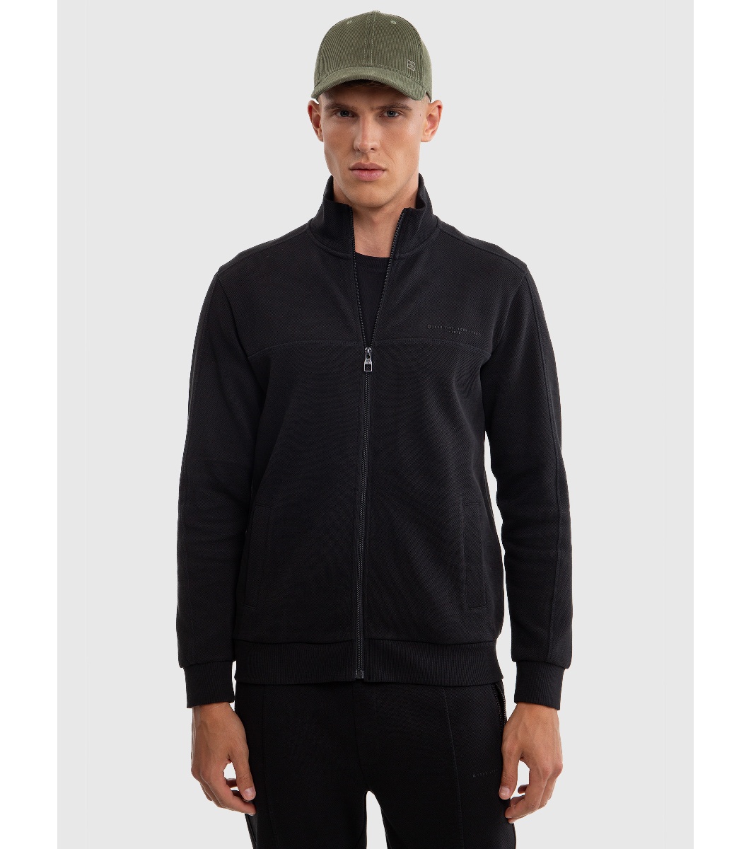Big Star Top sport negru pentru bărbați, din bumbac, Wlador Guler înalt