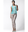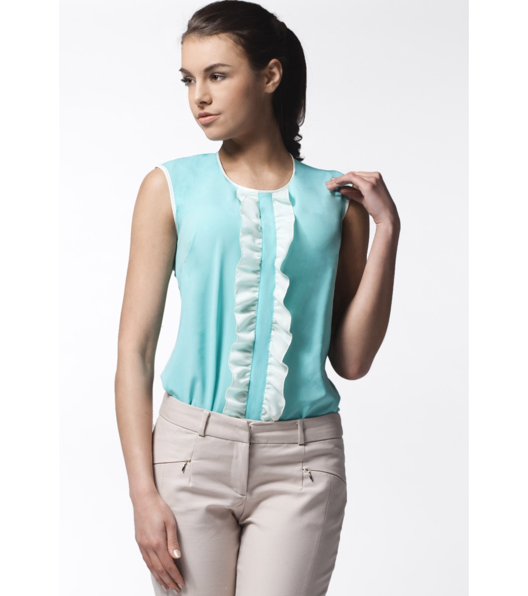 Awama Top verde mentă cu volane din material ecru Lena Decolteu rotund