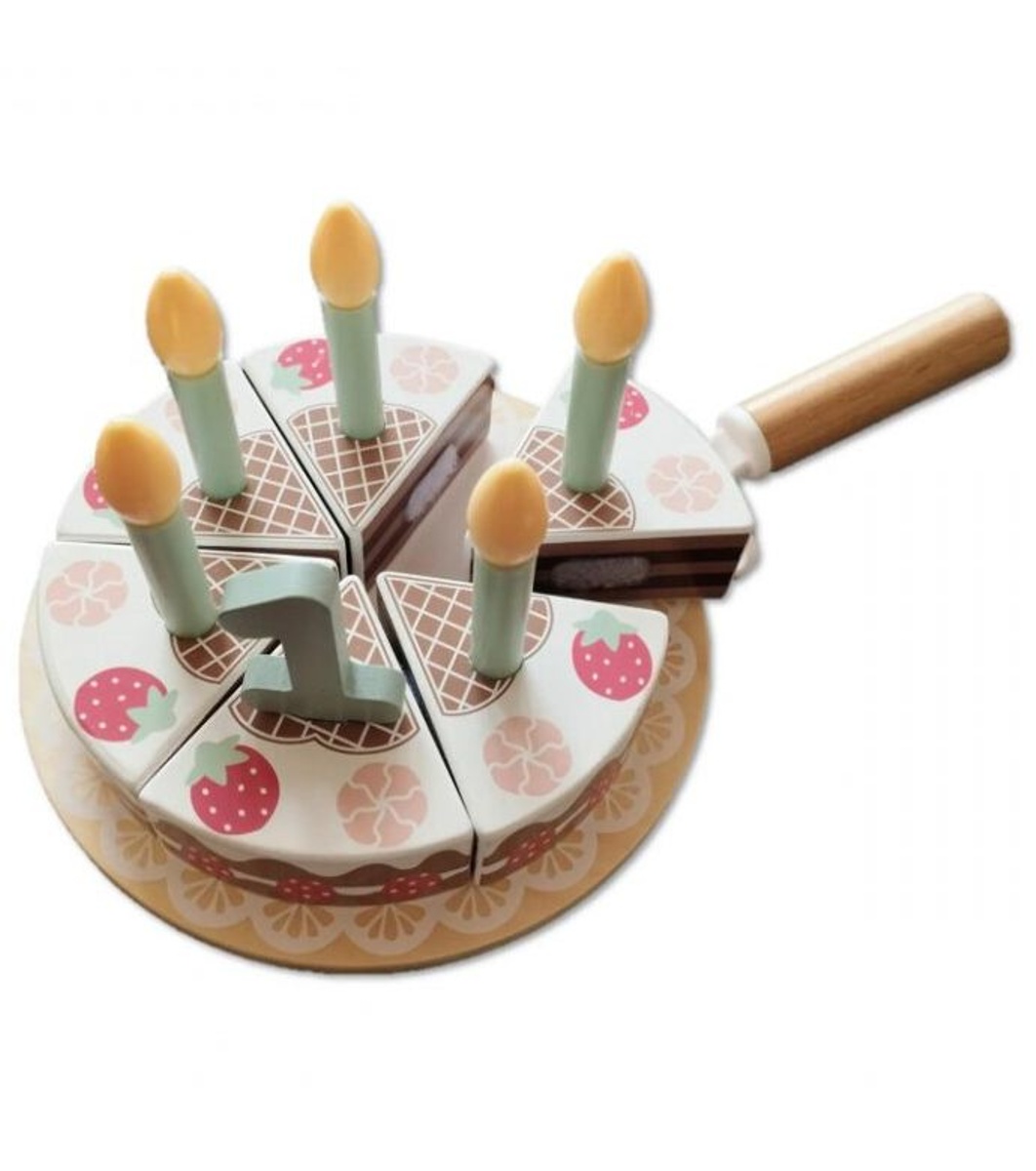 Tort de ziua de naștere din lemnFiecare copil așteaptă cu nerăbdare ziua sa de naștere. Pregătirile sărbătorii încep devreme. Trebuie ales cel mai delicios și frumos tort. Aici, Tooky Toy le oferă micuților noștri un tort frumos cu căpșuni, cu lumânări și numere. Vom stinge lumânările, vom tăia tortul în 6 bucăți și vom mânca un dulce.