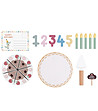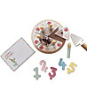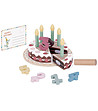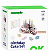 Setul include un total de 20 de elemente din lemn de înaltă calitate: 6 bucăți de tort de ciocolată cu căpșuni, îmbinate cu velcro reutilizabil; 5 lumânări din lemn; numere de la 1 la 5 pentru decor; spatulă de servire; tavă pentru tort; felicitare de ziua de naștere.