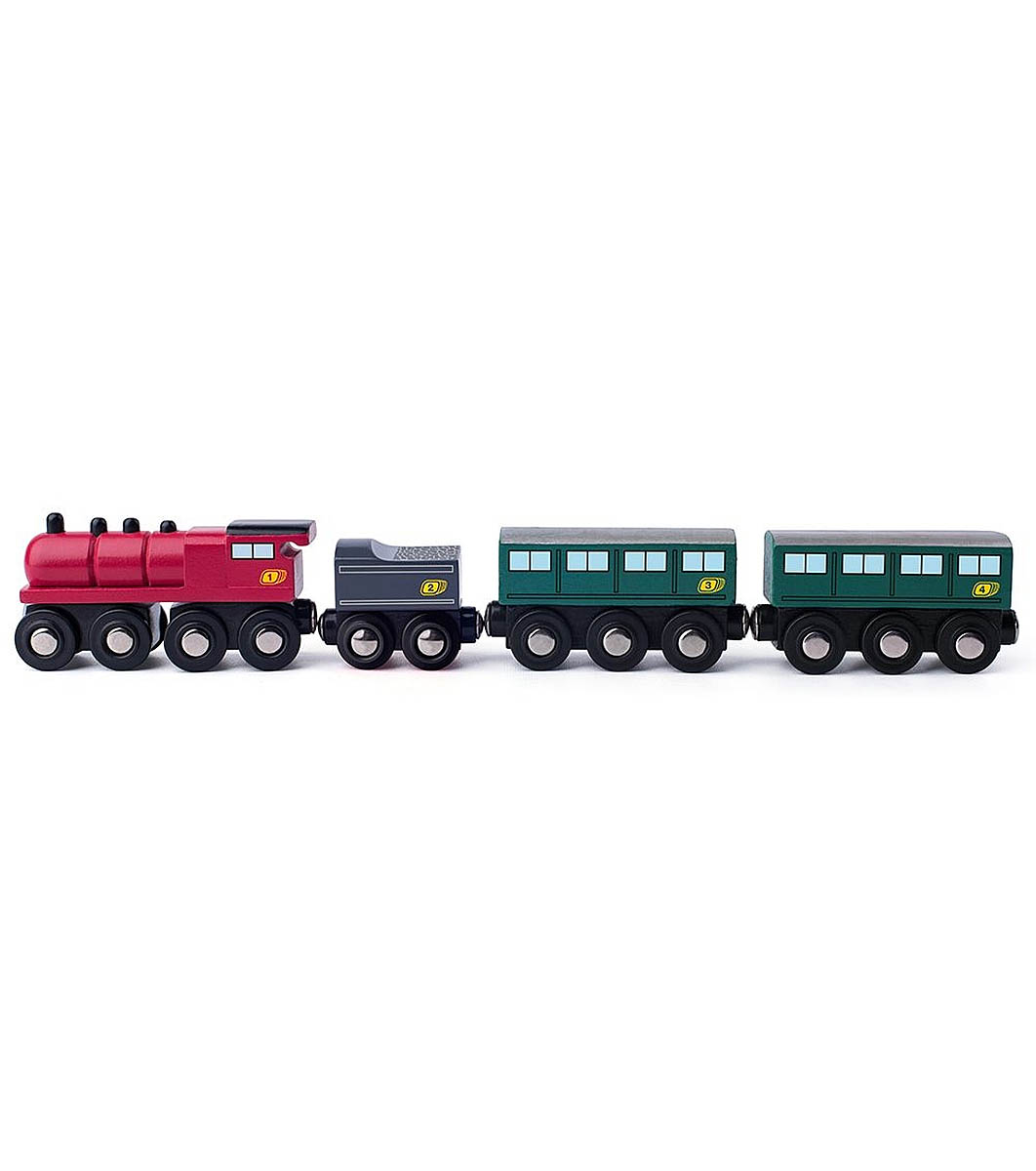 Trenul are o locomotivă și trei vagoane care se leagă între ele folosind magneți. Două dintre ele sunt pasageri și  al treilea - încărcătură.