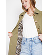 Trench kaki pentru femei cu căptușeală leopard