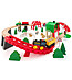Setul conține 60 de piese, inclusiv șine de lemn, un trenuleț cu vagoane, figurine de animale, copaci, căsuțe la fermă și diverse accesorii care îl inspiră pe copil să-și creeze propria fermă. Toate elementele sunt fabricate din lemn de înaltă calitate, vopsite cu vopsele sigure, netoxice, care asigură durabilitate și siguranță în timpul jocului.