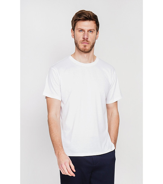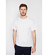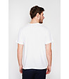 Tricou alb cu guler rotund, confecționat din in și bumbac