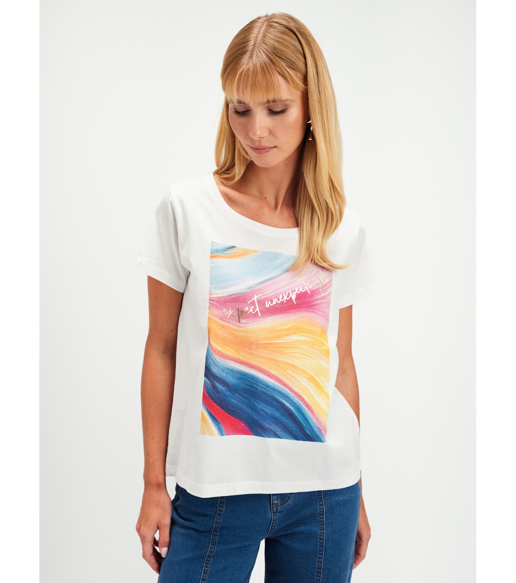 Tricou alb cu imprimeu colorat