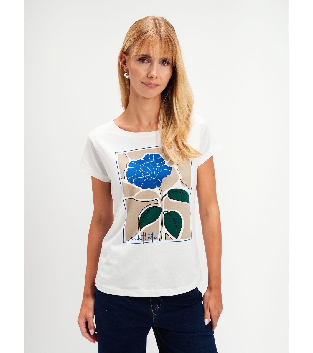 Tricou alb de damă cu imprimeu floral