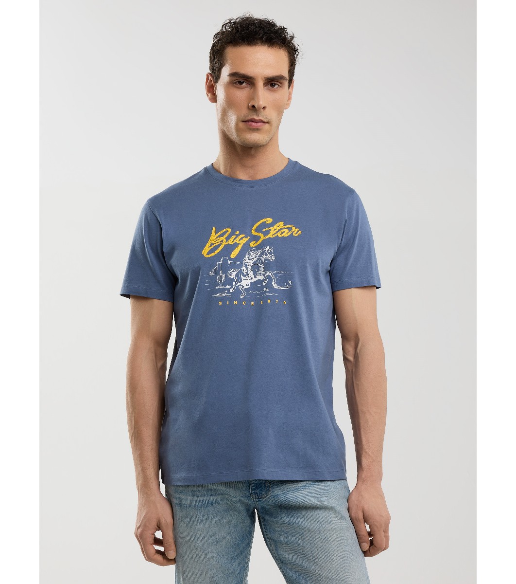 Big Star Tricou albastru bărbătesc din bumbac STELIANER Decolteu rotund