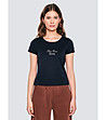 Tricou albastru închis de damă din bumbac MALVINA