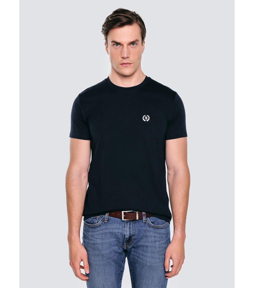 Big Star Tricou albastru închis pentru bărbați din bumbac KERAL Decolteu rotund
