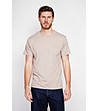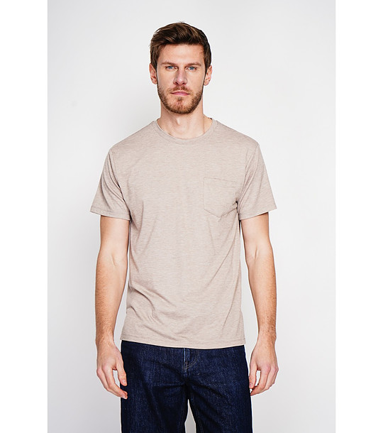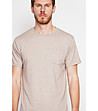 Tricou bej cu mâneci scurte și buzunar, confecționat din in și bumbac