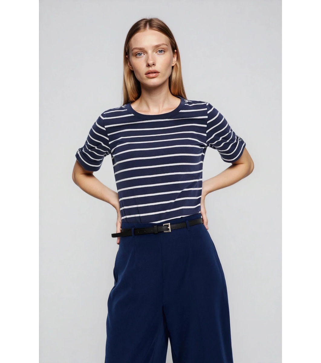 Moodo Tricou bleumarin cu dungi Tricou drept de damă cu dungi orizontale