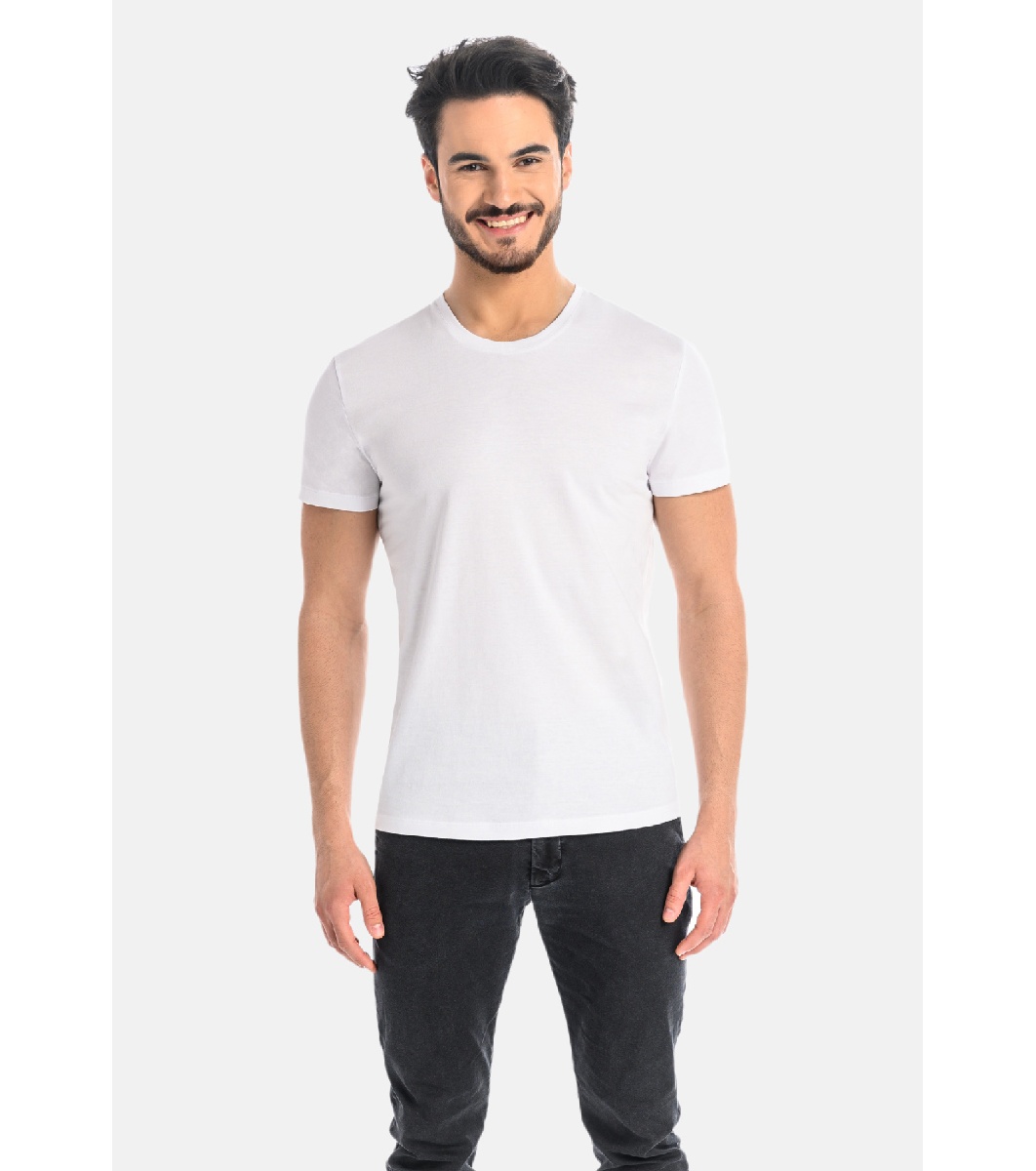 Teyli Tricou bărbătesc alb din bumbac Luca Decolteu rotund