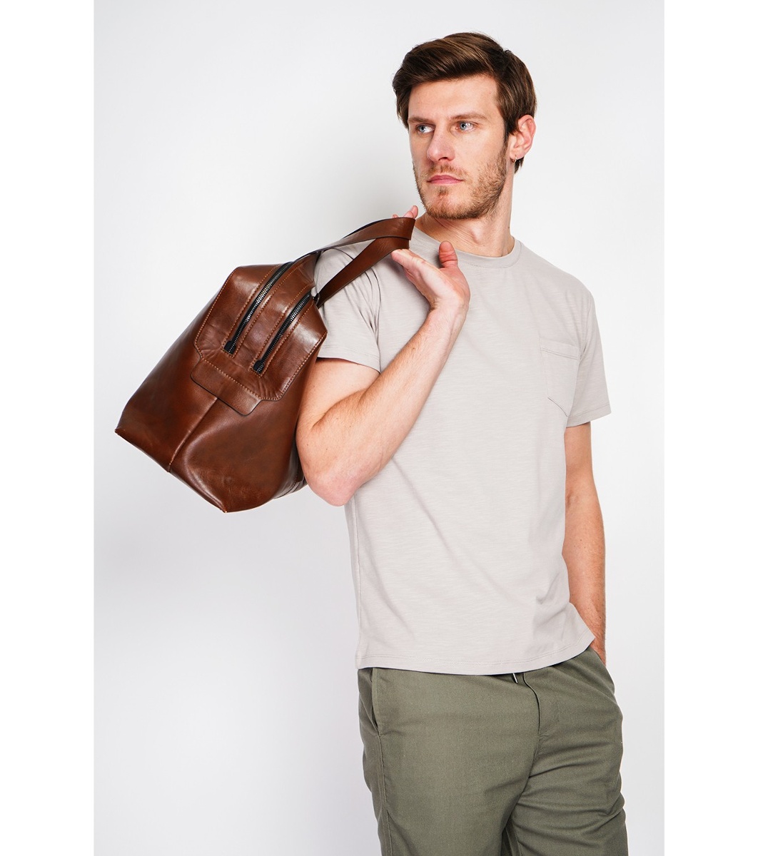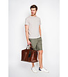 Tricou bărbătesc bej cu buzunar, confecționat din in și bumbac