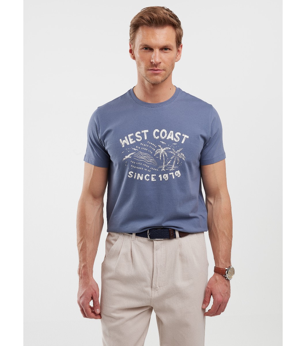 Big Star Tricou bărbătesc din bumbac albastru Reddrez Decolteu rotund