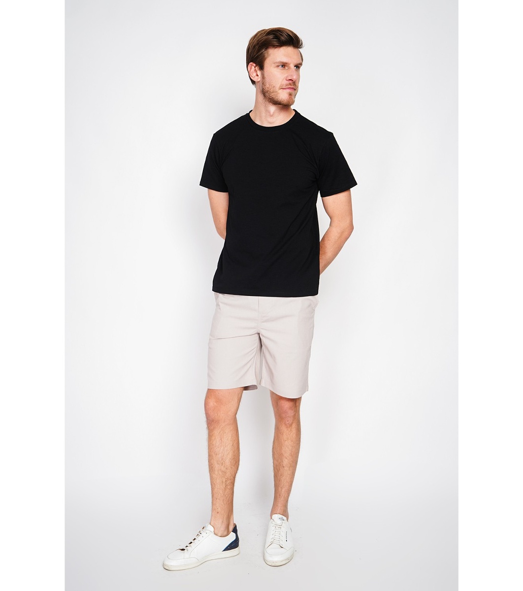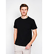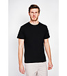 Tricou bărbătesc negru cu guler rotund, confecționat din in și bumbac