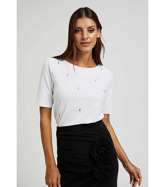 Moodo Tricou dama din bumbac alb cu cristale Nina Gât rotund