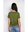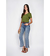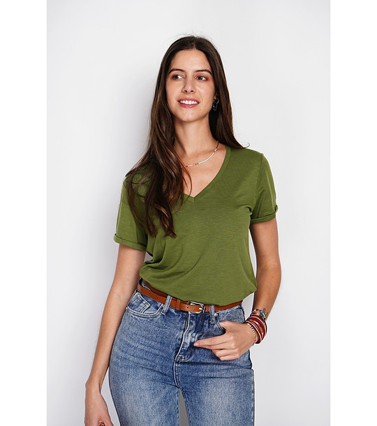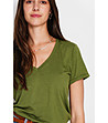 Tricou de damă de culoare kaki cu decolteu în V, confecționat din in și bumbac