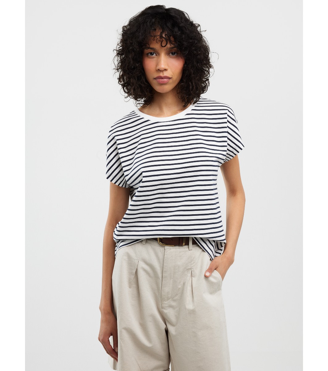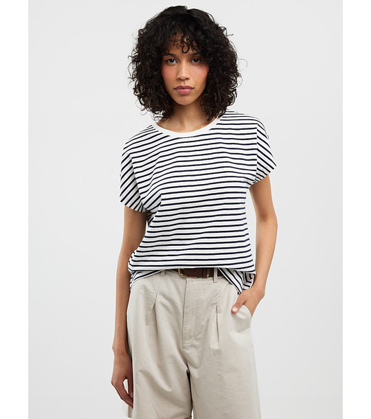 Tricou de damă din bumbac cu dungi, bleumarin și alb, ALEKSA