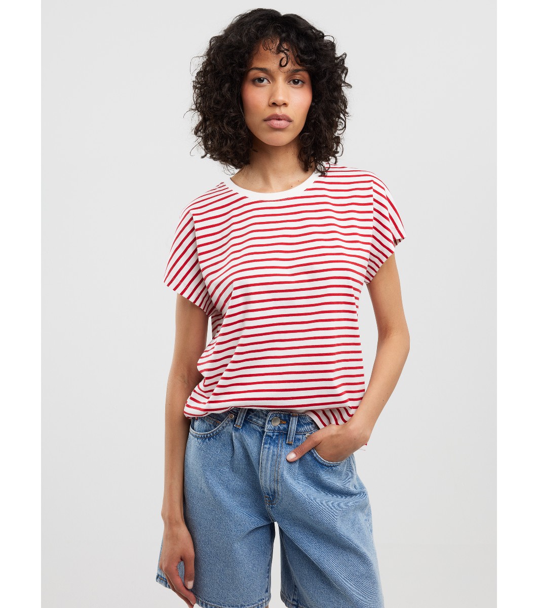 Tricou de damă din bumbac cu dungi roșii și albe ALEKSA