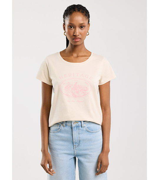 Big Star Tricou de damă din bumbac, de culoare crem, ALOTA Decolteu rotund