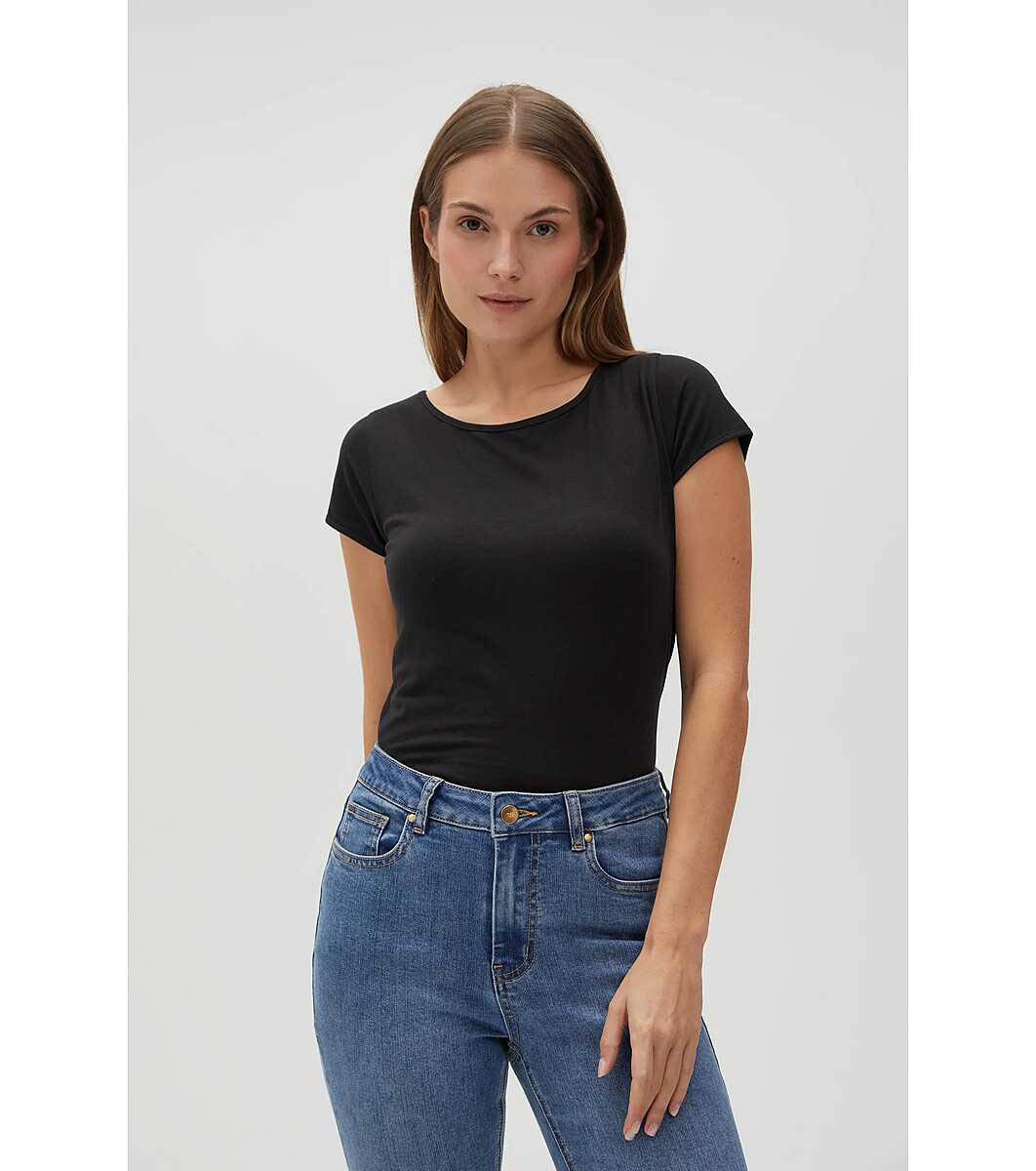 Moodo Tricou de damă din bumbac negru Decolteu rotund